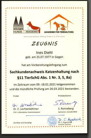 Alle unsere Zuchttiere sind negativ auf HCM, PKD getestet sowie